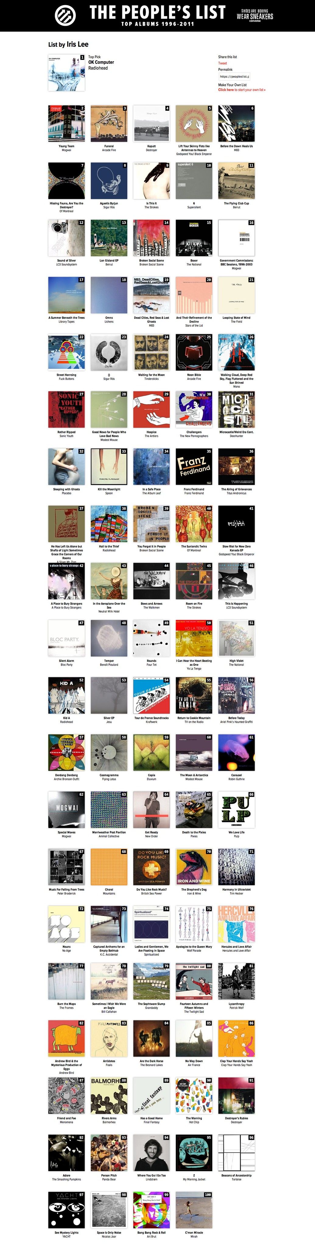 我也选出我心中的1996-2011年百大独立专辑。